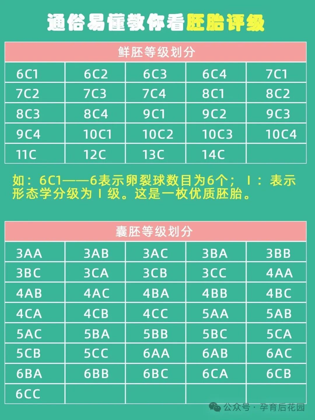 胚胎等级一般会被划分为 9 个等级,从 AA 级到 CC 级。